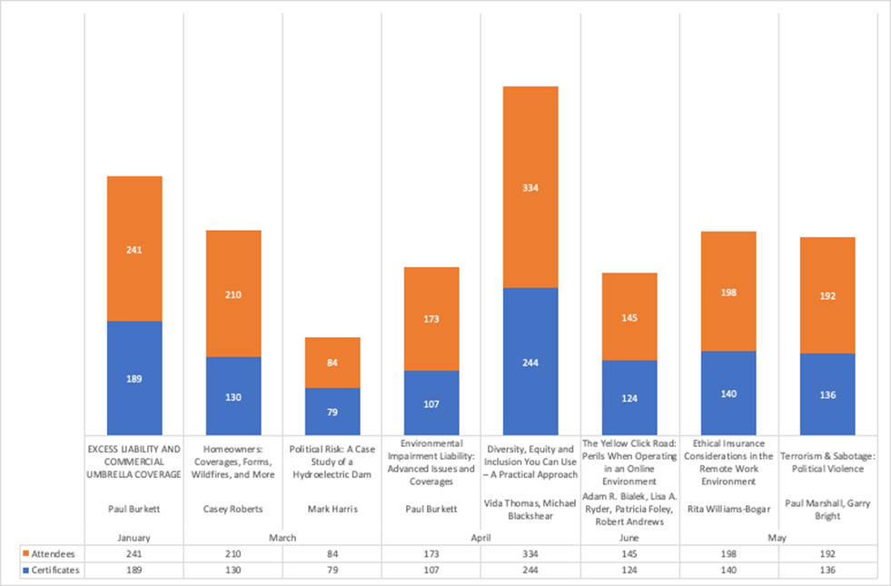 California insurance code section 1765(f) requires that all surplus line business entities provide two hours of training to its employees who solicit, negotiate or effect insurance coverage with a surplus line insurer. The 2-Hour Training has been attended by over 200 members in 2022, which is up by over 30% over the prior year. Continuing efforts are underway to increase compliance and engagement, including a RAPID enhancement to improve tracking and reminders.