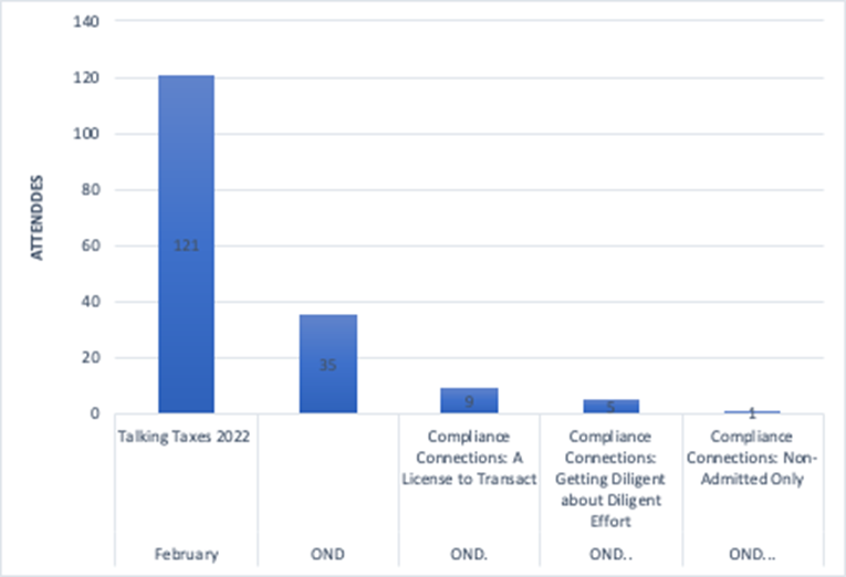 Please see the following summary of our on-demand courses which were attended by approximately 160 licensees to date. The goal for 2022 is to implement ADA compliance standards so that content is readily accessible to all members.