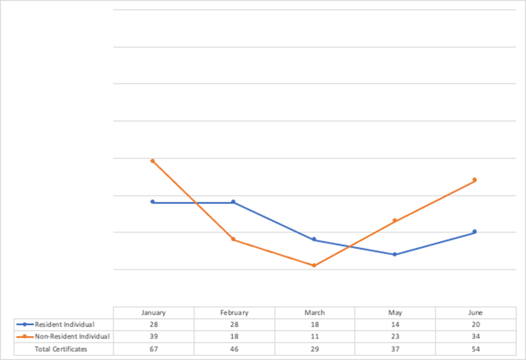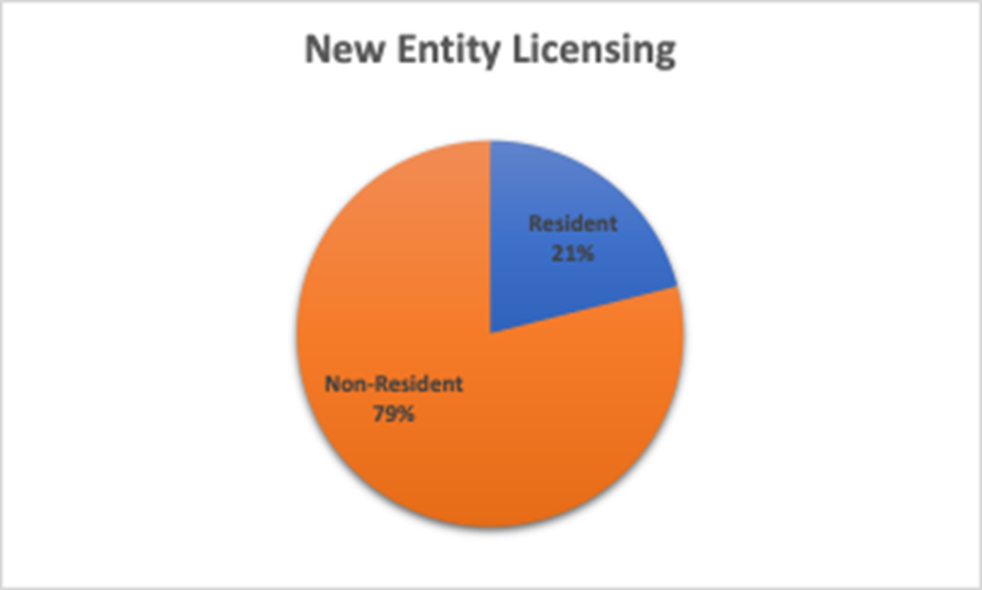 Membership growth through April has been steady; approximately 334 licenses were issued to individual brokers and entities; non-resident entity licenses represent 79% of the entity surplus line licenses issued year-to-date.